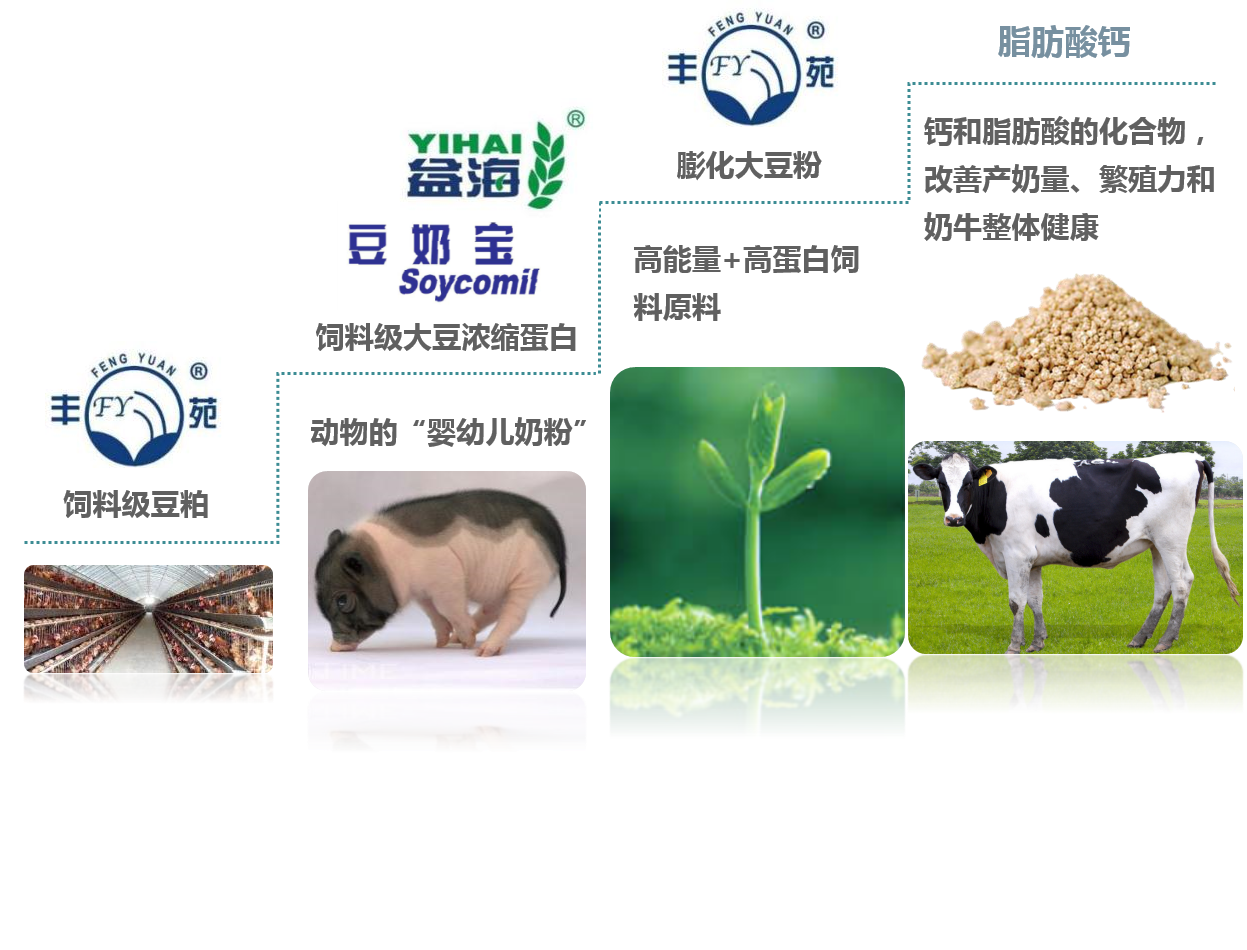 饲料原料饲料原料部负责集团饲料原料产品的国内外贸易和销售工作,主营产品包括:(1)自产“丰苑品牌”豆粕、菜粕、棉粕、花生粕、芝麻粕,膨化大豆粉,大豆浓缩蛋白,发酵豆粕,小麦、大米和玉米副产品系列,饲料用油,脂肪粉及脂肪酸钙;(2) 自营进口产品:棕榈粕、椰子粕、DDGS、菜籽粕、甜菜粕、大麦和高粱等;基本涵盖了所有植物蛋白和部分能量饲料原料。